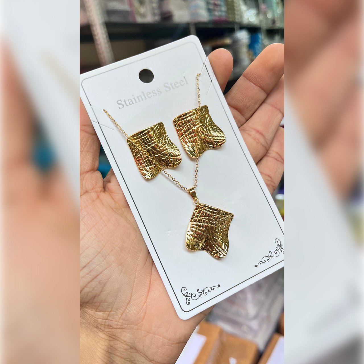 Modern abstract wave pattern stainless steel chain with earrings. Anti-tarnish, waterproof, lightweight, and perfect for chic styling.
